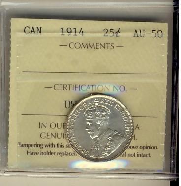 1914 25¢ ICCS AU50.