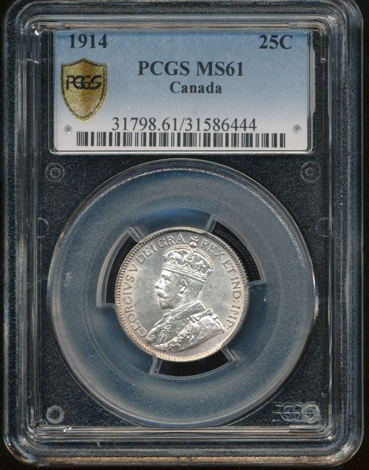 1914 25¢ PCGS MS61. Lustrous semi key issue.