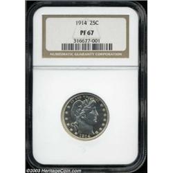 <table><tr><td><TABLE cellSpacing=0 cellPadding=0 width="100%" bgColor=#000000 border=0><TBODY> <TR><TD width="100%"><TABLE cellSpacing=1 cellPadding=3 width="100%" border=0><TBODY><TR><TD width="100%" bgColor=#79735c><FONT face=arial color=#ffffff size=3><B>Description</B> </FONT></TD></TR><TR><TD width="100%" bgColor=#ffffff><FONT face=arial size=2><B>1914 25C PR67 NGC.</B></I> The 1914 has the lowest mintage of any proof issue in the Barber quarter series with only 380 pieces produced. This Superb example has unfathomably deep mirrors in the fields with only the slightest hint of mint frost on the devices. Approaching technical perfection, the surfaces are virtually brilliant with just the slightest accent of pinkish-golden color on each side. Population: 18 in 67, 8 finer (7/03). </FONT></TD></TR></TBODY></TABLE></TD></TR></TBODY></TABLE><BR><A name=PricesRealized></A><TABLE cellSpacing=0 cellPadding=0 width="100%" bgColor=#000000 border=0><TBODY><TR><TD width="100%"><TABLE cellSpacing=1 cellPadding=3 width="100%" border=0><TBODY><TR><TD width="100%" bgColor=#79735c><A name=PR><FONT face=arial color=#ffffff size=3><B>Previous Prices from Heritage Auctions</B> </FONT></A></TD></TR><TR><TD bgColor=#f6f6ed><TABLE cellSpacing=0 cellPadding=0 width="100%" border=1><TBODY><TR><TD align=middle width="33%"><B>Date</B></TD><TD align=middle width="33%"><B>Service</B></TD><TD align=middle width="33%"><B>Price</B></TD></TR><TR bgColor=whitesmoke><TD width="33%"><B>07/29/2003</B></TD><TD width="33%">NGC</TD><TD width="33%">$2,990.00</TD></TR><TR bgColor=whitesmoke><TD width="33%"><B>09/30/2002</B></TD><TD width="33%">NGC</TD><TD width="33%">$3,795.00</TD></TR><TR bgColor=whitesmoke><TD width="33%"><B>09/01/1999</B></TD><TD width="33%">NGC</TD><TD width="33%">$3,450.00</TD></TR><TR bgColor=whitesmoke><TD width="33%"><B>08/01/1999</B></TD><TD width="33%">PCGS</TD><TD width="33%">$6,325.00</TD></TR></TBODY></TABLE></TD></TR><TR><TD bgColor=#ffffff><FONT face=arial size=1 ?>PLEASE NOTE: All prices realized reflect the final hammer price PLUS the buyer's premium in auctions that charge a buyer's premium. Each item has a notation at the top of the listing indicating whether that lot included a buyer's premium. Example: A item that sells with a final hammer price of $100 and a 20% buyer's premium will display with a price realized of $120. All information listed is intended to be as accurate as possible, but errors are possible. Please use this guide carefully and inform us of any inaccuracies. </FONT></TD></TR></TBODY></TABLE></TD></TR></TBODY></TABLE><BR><TABLE cellSpacing=0 cellPadding=0 width="100%" bgColor=#000000 border=0><TBODY><TR><TD width="100%"><TABLE cellSpacing=1 cellPadding=3 width="100%" border=0><TBODY><TR><TD width="100%" bgColor=#79735c colSpan=6><FONT face=arial color=#ffffff size=3><B>Price Guide*</B> </FONT></TD></TR><TR bgColor=#f6f6ed><TD align=middle><B>Grade</B> </TD><TD align=middle><B>Coin World<BR>(Trends)</B> </TD><TD align=middle><B>Numismedia<BR>Retail</B> </TD><TD align=middle><B>Numismedia<BR>Wholesale</B> </TD><TD align=middle><B>Coin<BR>Universe</B> </TD><TD align=middle><B>Heritage<BR>Value Index</B> </TD></TR><TR bgColor=#ffffff><TD align=middle>66</TD><TD align=right>---</TD><TD align=right>---</TD><TD align=right>$2,550.00</TD><TD align=right>$3,850.00</TD><TD align=right>$2,172.50</TD></TR><TR style="FONT-WEIGHT: bold" bgColor=#cccfdd><TD align=middle>67</TD><TD align=right>---</TD><TD align=right>---</TD><TD align=right>$4,125.00</TD><TD align=right>$6,000.00</TD><TD align=right>$3,997.50</TD></TR><TR bgColor=#ffffff><TD align=middle>68</TD><TD align=right>---</TD><TD align=right>---</TD><TD align=right>$7,650.00</TD><TD align=right>---</TD><TD align=right>---</TD></TR><TR bgColor=#ffffff><TD colSpan=6><FONT size=1>*All information listed is intended to be as accurate as possible, but errors are possible. No item may be returned or refused based on this information which is provided as a service to our customers. You should contact each pricing source directly to determine the accuracy of this information. </FONT></TD></TR></TBODY></TABLE></TD></TR></TBODY></TABLE><BR><TABLE cellSpacing=0 cellPadding=0 width="100%" bgColor=#000000 border=0><TBODY><TR><TD width="100%"><TABLE cellSpacing=1 cellPadding=3 width="100%" border=0><TBODY><TR><TD width="100%" bgColor=#79735c><FONT face=arial color=#ffffff size=3><B>Population Guide</B> </FONT></TD></TR><TR bgColor=#ffffff><TD align=middle><!-- Begin Output of Population Grid--><TABLE cellSpacing=0 cellPadding=0 width="100%" border=0><TBODY><TR><TD vAlign=center><TABLE cellSpacing=0 width="100%" border=1 cellsadding="3"><TBODY><TR><TD vAlign=center><TABLE cellSpacing=0 cellPadding=3 width="100%" border=1><TBODY><TR><TD vAlign=center align=middle bgColor=#f0f1e8 colSpan=2 <CENTER><FONT face=Arial size=2><B>PCGS Pop </B></FONT><CENTER></CENTER></TD><TD vAlign=center align=middle bgColor=#f0f1e8 colSpan=2><CENTER><FONT face=Arial size=2><B>NGC Pop</B></CENTER></FONT></TD></TR><TR><TD vAlign=center><FONT face=Arial size=2>(67)</FONT> </TD><TD vAlign=center align=right><FONT face=Arial size=2>12</FONT> </TD><TD vAlign=center><FONT face=Arial size=2>(67)</FONT> </TD><TD vAlign=center align=right><FONT face=Arial size=2>18</FONT> </TD></TR><TR><TD vAlign=center><FONT face=Arial size=2>(>67)</FONT> </TD><TD vAlign=center align=right><FONT face=Arial size=2>4</FONT> </TD><TD vAlign=center><FONT face=Arial size=2>(>67)</FONT> </TD><TD vAlign=center align=right><FONT face=Arial size=2>8</FONT> </TD></TR></TBODY></TABLE></TD></TR></TBODY></TABLE></TD></TR></TBODY></TABLE><!-- End Output of Population Grid--></TD></TR></TBODY></TABLE></TD></TR></TBODY></TABLE><BR><TABLE cellSpacing=0 cellPadding=0 width="100%" bgColor=#000000 border=0><TBODY><TR> Important notice: Heritage usually auctions material at the rate of 200-250 lots per hour. On some occasions eBay Live bid software or the Internet may not be able to keep up with the pace of 