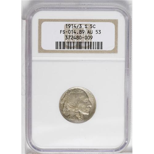 <B>1914/3-S<5C> AU53 NGC.</B></I> FS-014.89. Delicate russet freckles overlie this lustrous but briefly circulated pearl-gray example. Only the most minimal contact is detected. Census: 3 in 53, 23 finer (9/06).<BR><I>From The Tide Collection.</B></I>