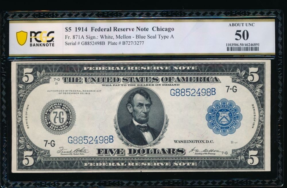 One 1914 $5 Chicago FRN PCGS 50.
