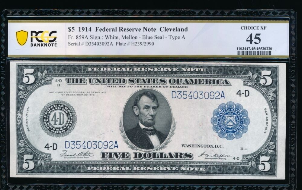One 1914 $5 Cleveland FRBN PCGS 45.