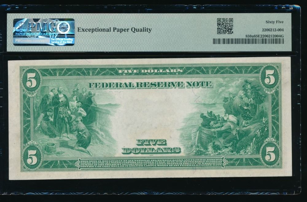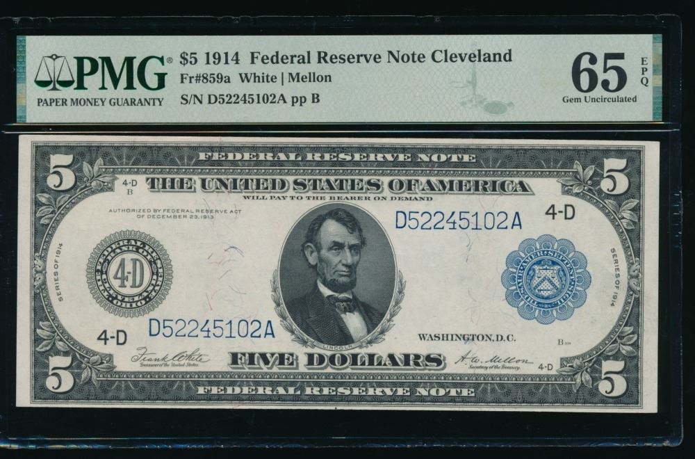 One 1914 $5 Cleveland FRN PMG 65EPQ.