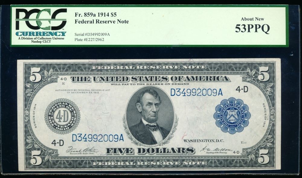One 1914 $5 Cleveland Federal Reserve Bank Note PCGS 53PPQ.
