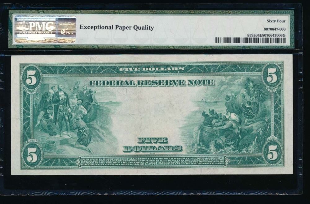 One 1914 $5 Cleveland Federal Reserve Bank Note PMG 64EPQ.