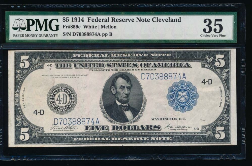 One 1914 $5 Cleveland Federal Reserve Note PMG 35.