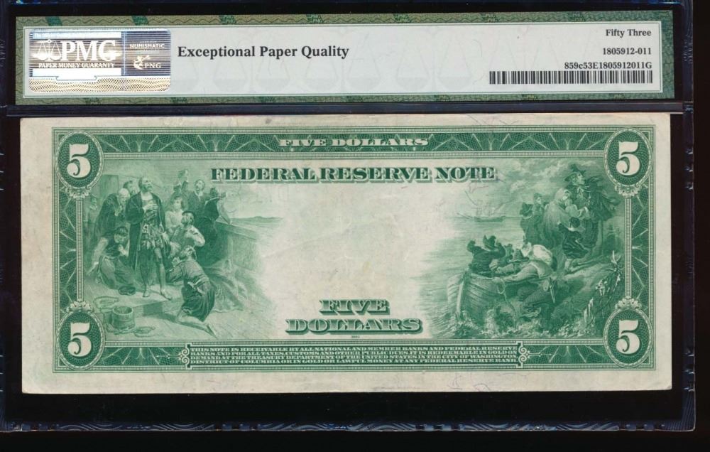 One 1914 $5 Cleveland Federal Reserve Note PMG 53EPQ.