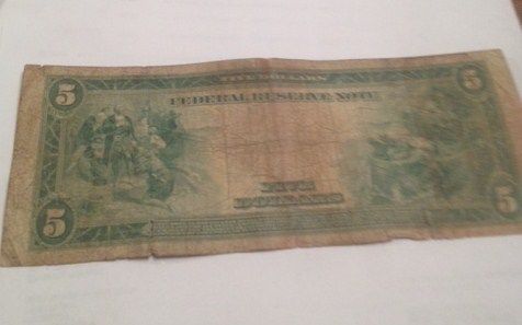 $5 FEDERAL RESERVE NOTE BLUE SEAL "HORSE BLANKET", VG