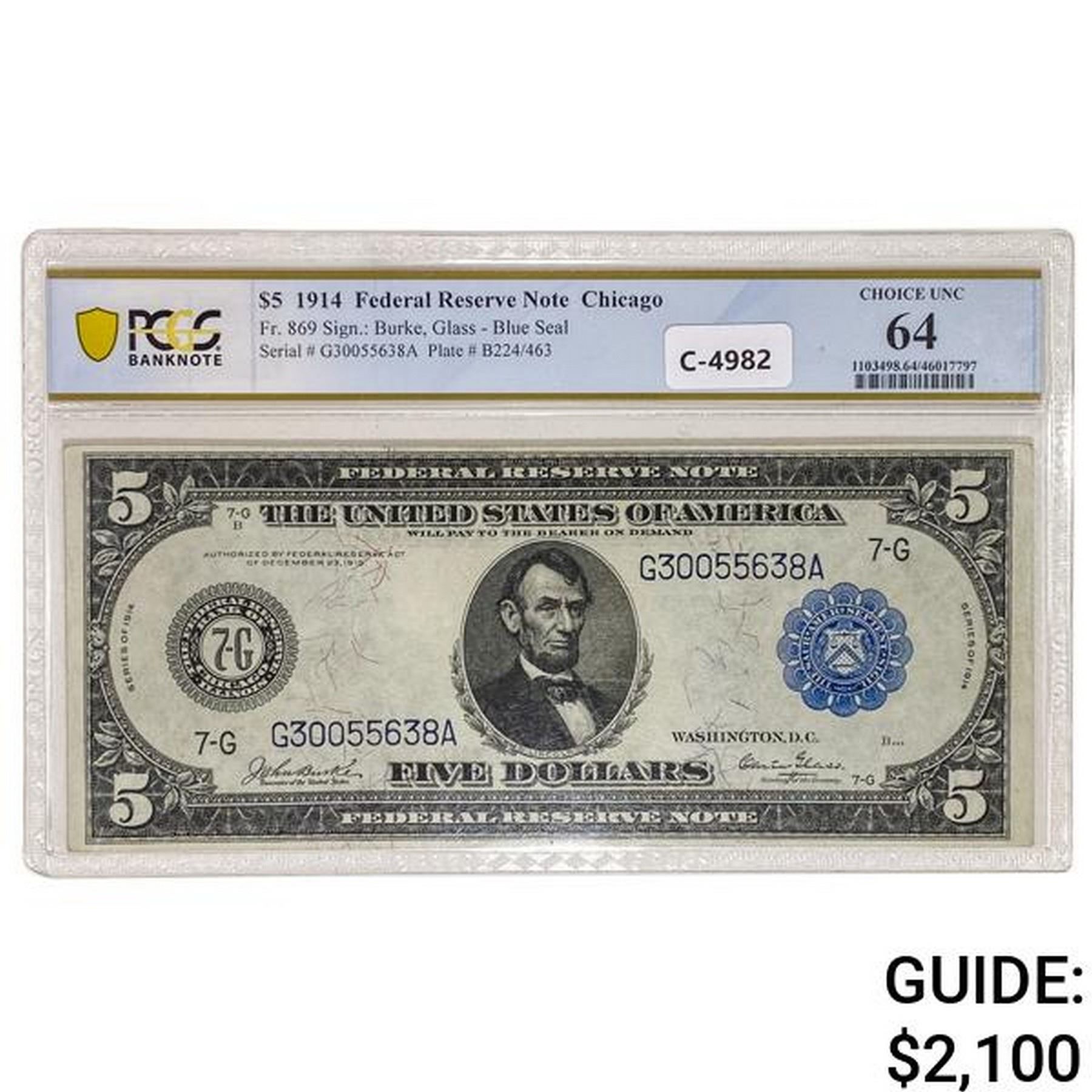 1914 $5 FRN CHICAGO, IL PCGS UNCIRCULATED-64