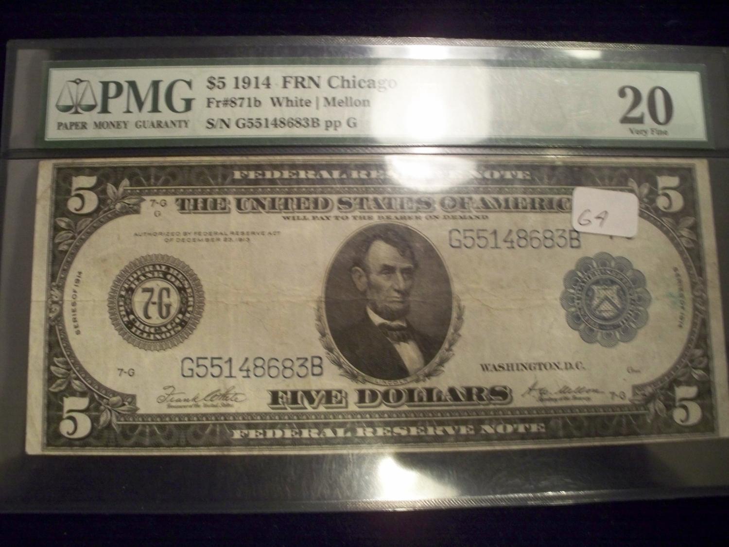 1914 $5 Federal Reserve Bank Note, Graded VF 20