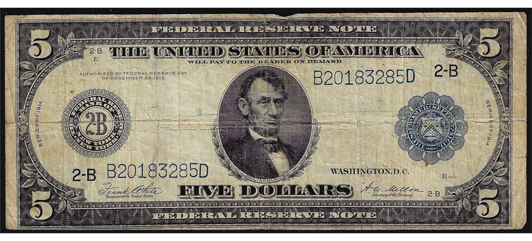 One 1914 $5 Federal Reserve Bank Note New York.