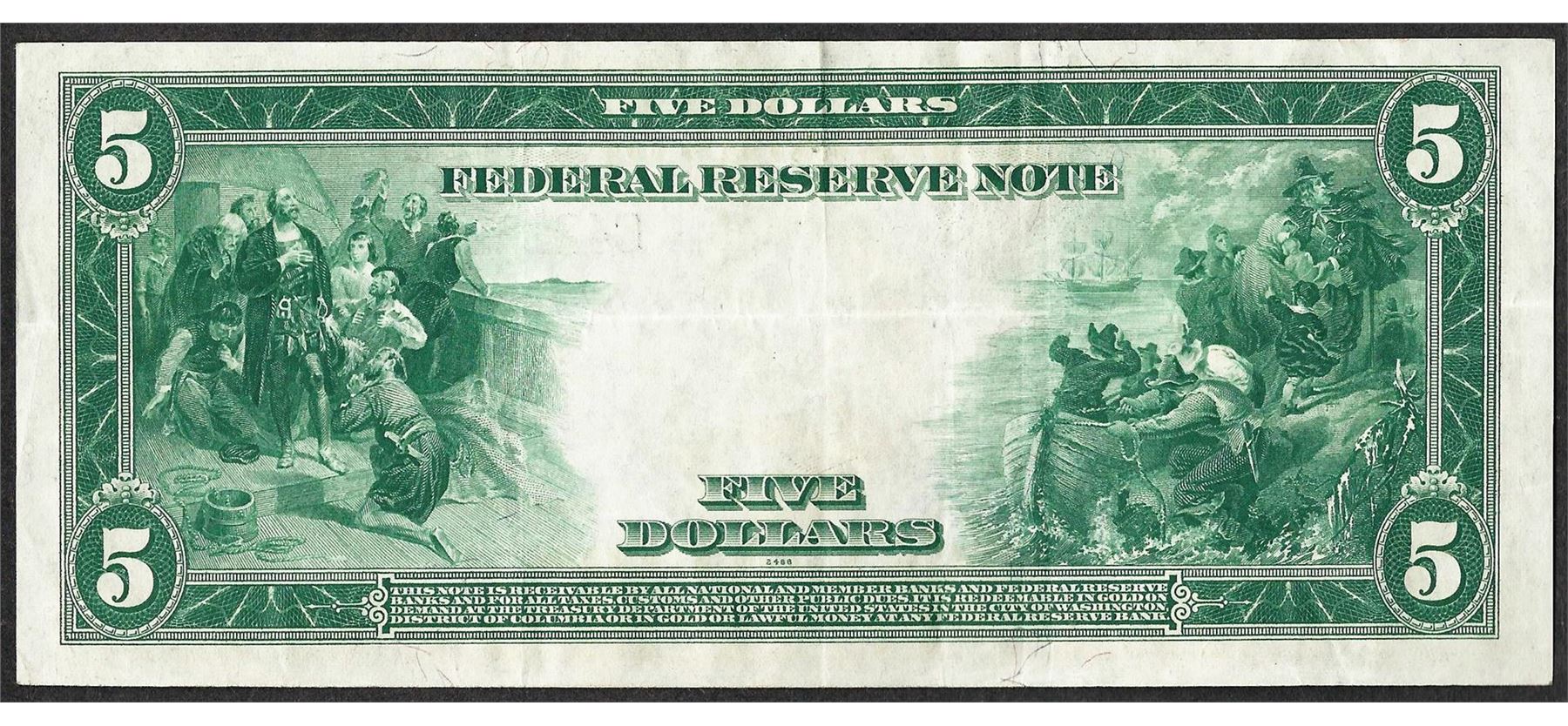 One 1914 $5 Federal Reserve Bank Note Philadelphia.