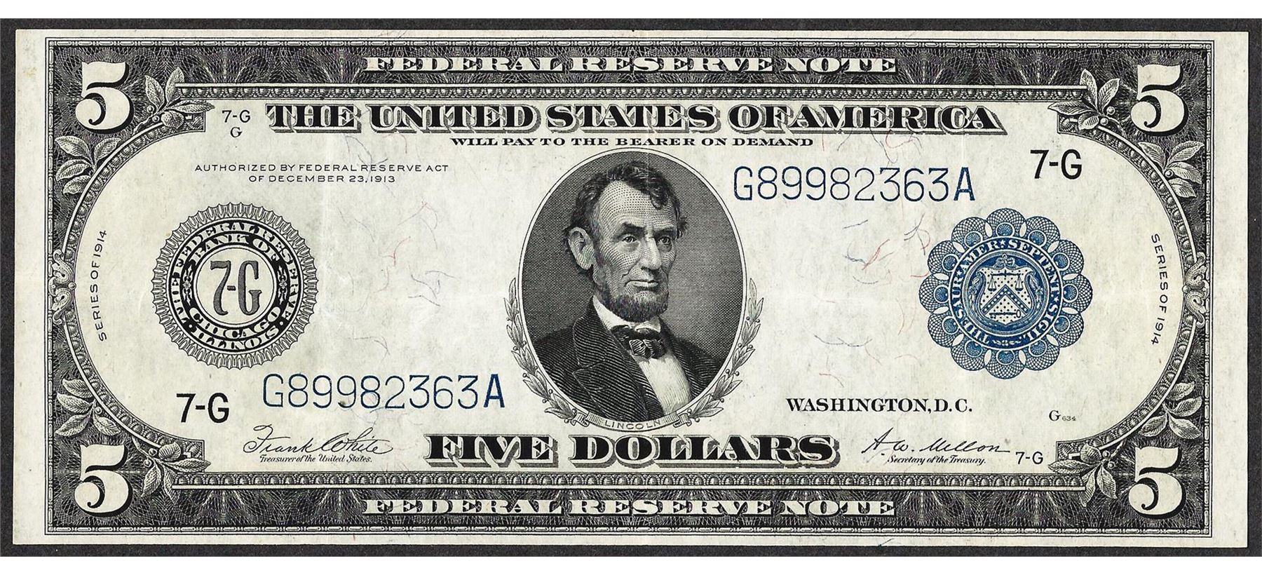 One 1914 $5 Federal Reserve Note Chicago.