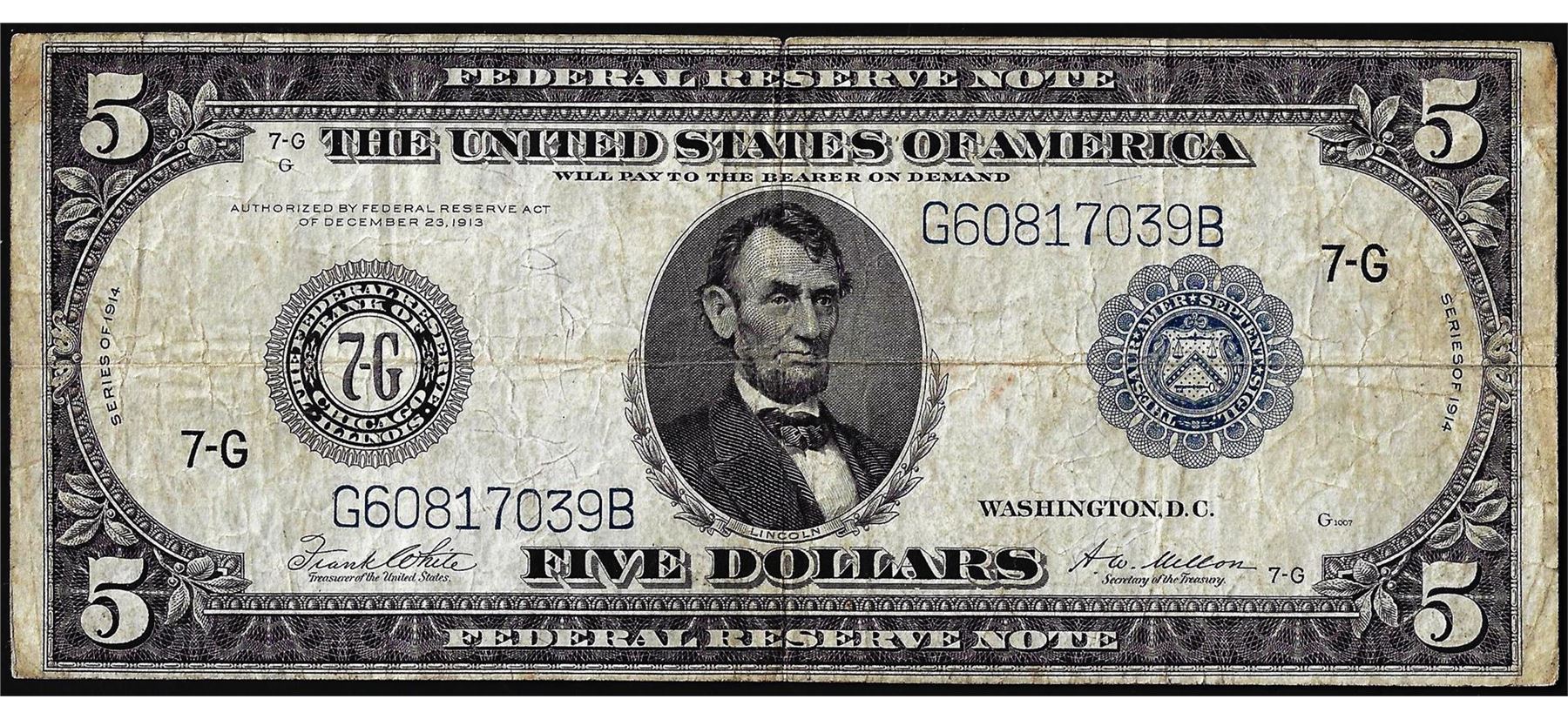 One 1914 $5 Federal Reserve Note Chicago.