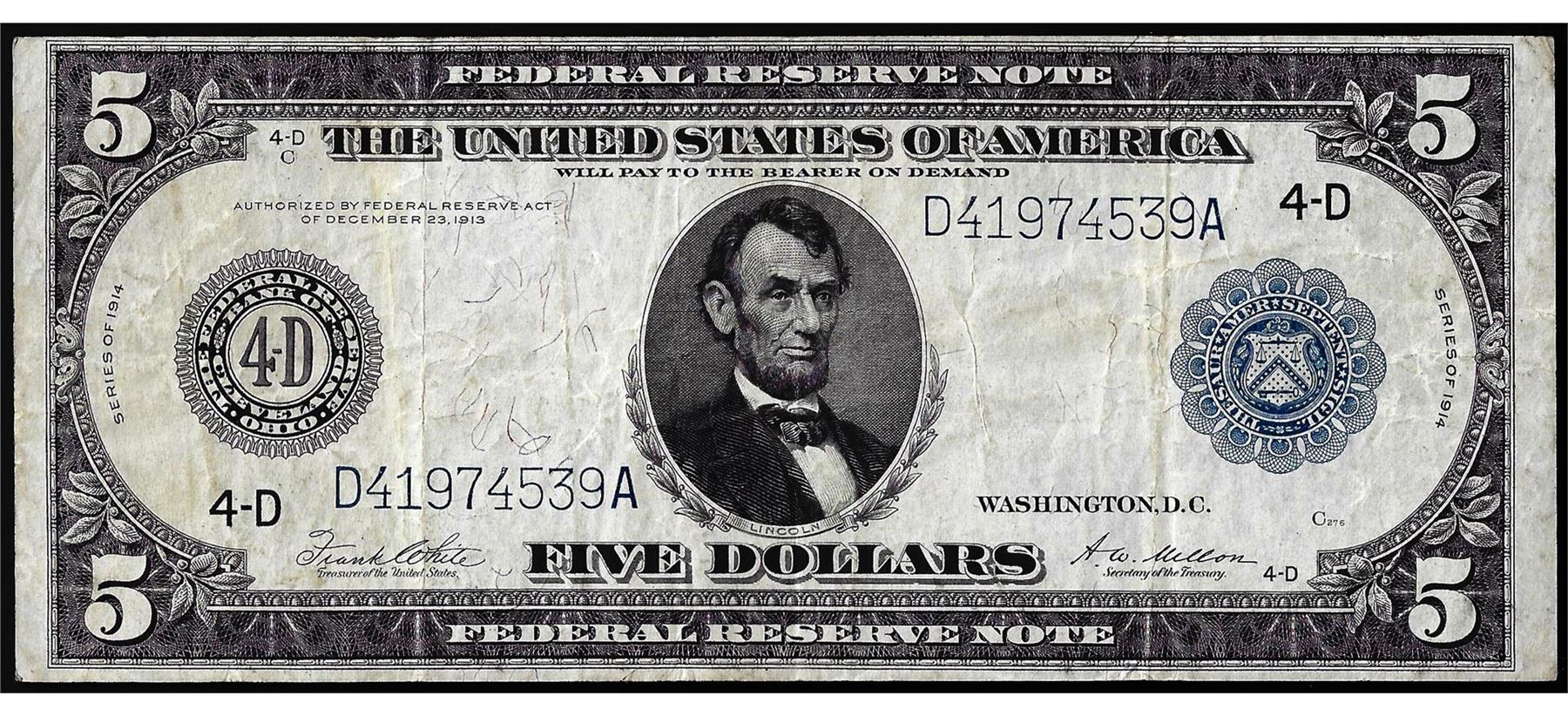 One 1914 $5 Federal Reserve Note Cleveland.