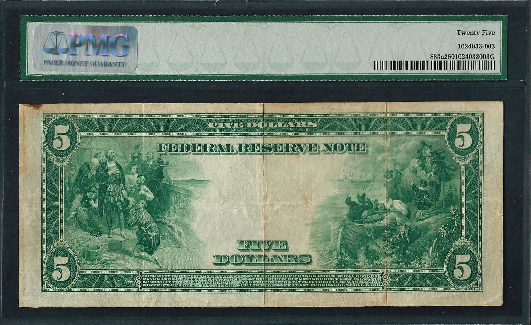 1914 $5 Federal Reserve Note Kansas City Fr.883a PMG Very Fine 25