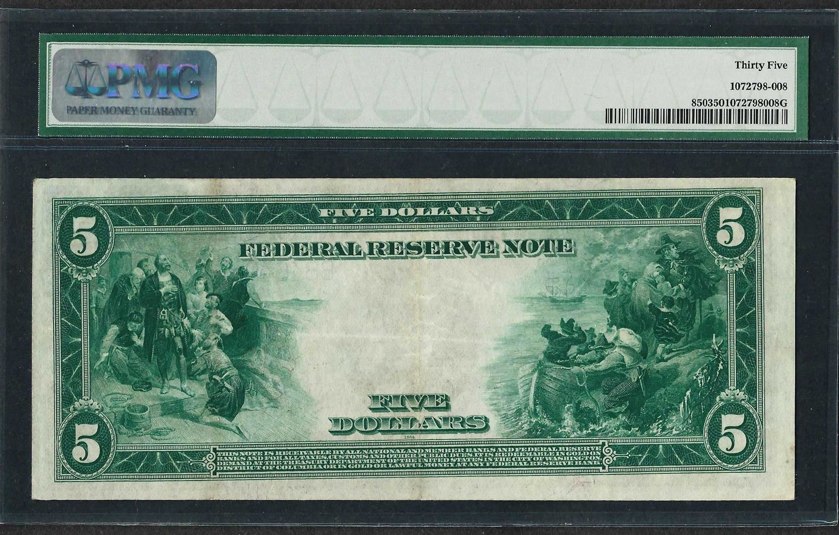 1914 $5 Federal Reserve Note New York Fr.850 PMG Choice Very Fine 35