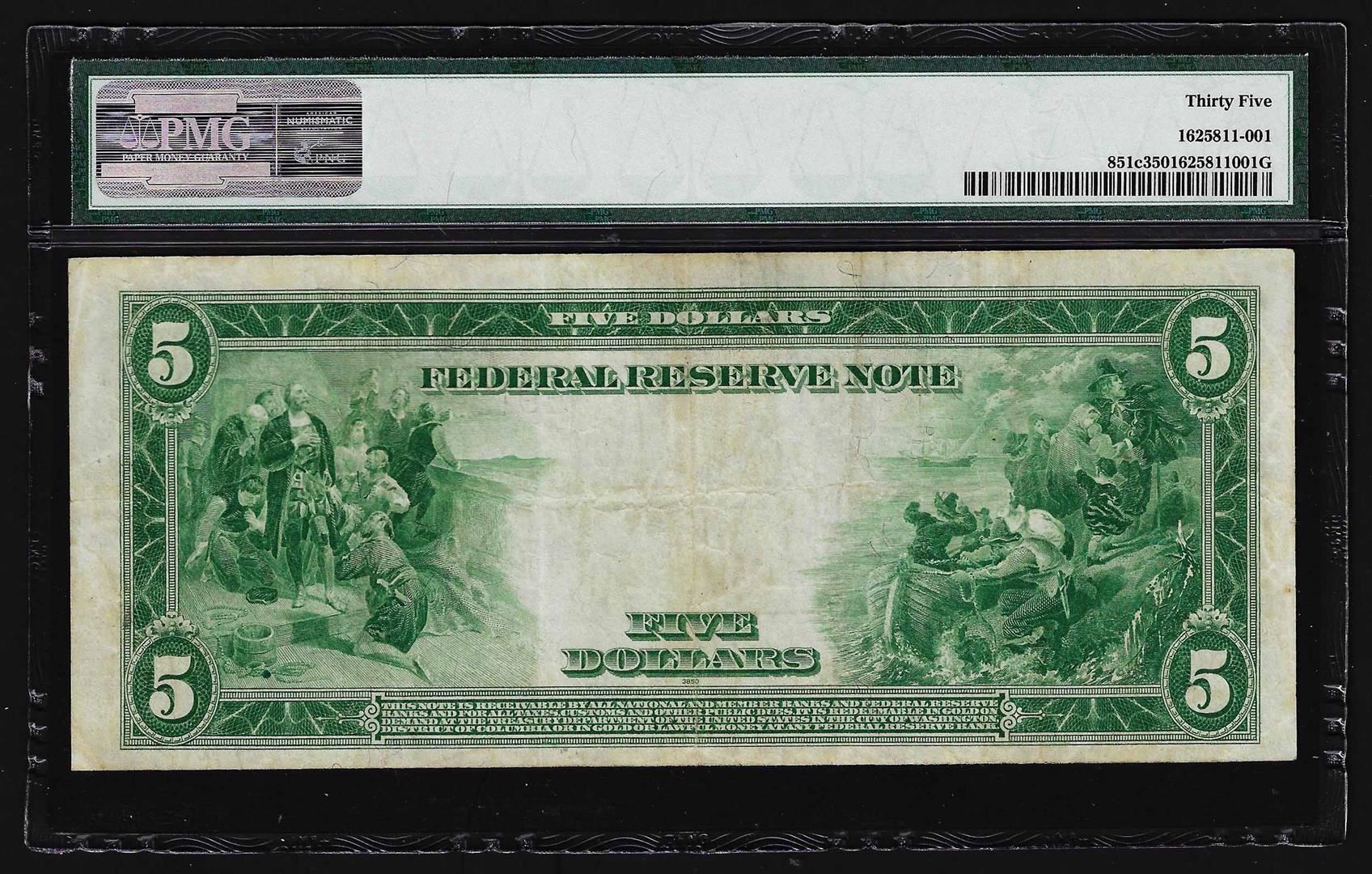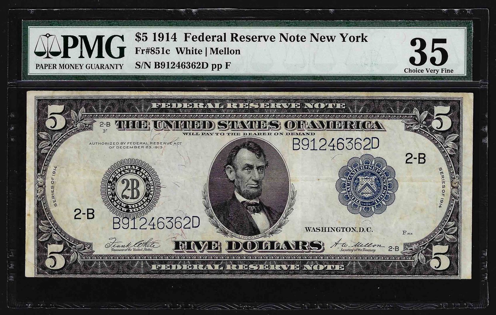 One 1914 $5 Federal Reserve Note New York PMG Choice Very Fine 35. PMG Certified.