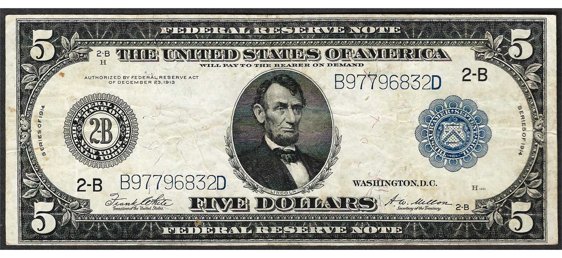 One 1914 $5 Federal Reserve Note New York.