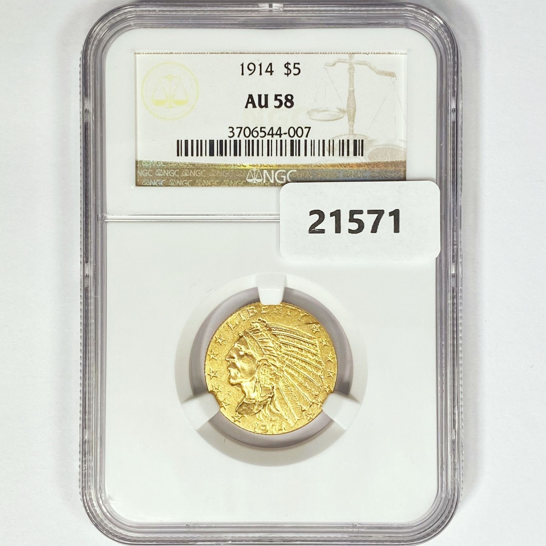 1914 $5 Gold Half Eagle NGC AU58