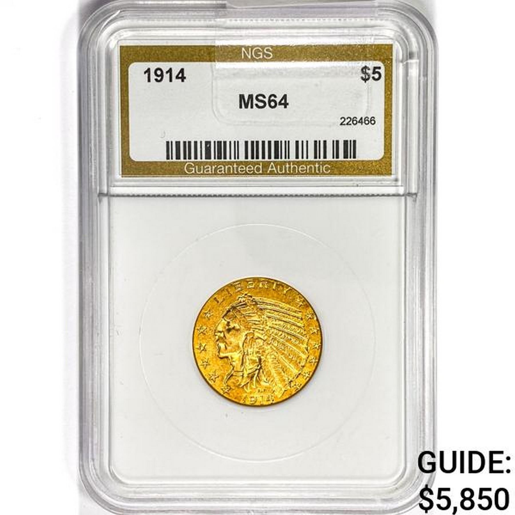 1914 $5 Gold Half Eagle NGS MS64