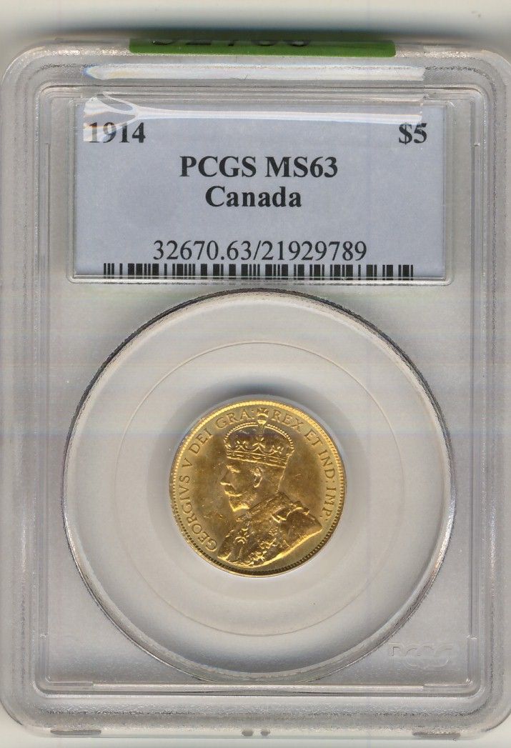 1914 $5 Gold PCGS MS63. Trends Value: $3500