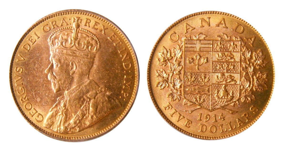 1914 $5 Gold PCGS MS63. Well struck and lustous. A scarce date in Choice condition.