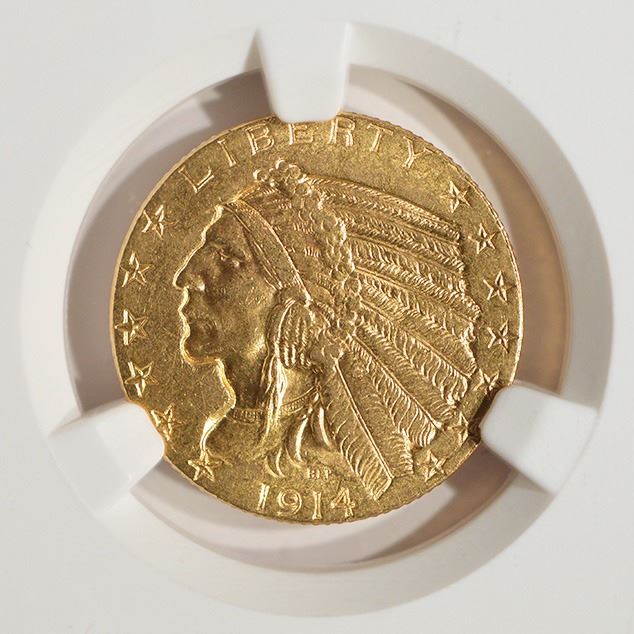 One 1914 $5 Indian Head Half Eagle Gold Coin NGC MS62.