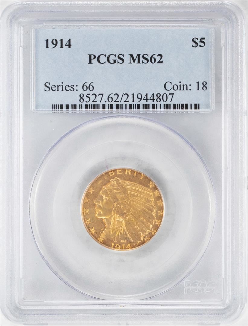 One 1914 $5 Indian Head Half Eagle Gold Coin PCGS MS62. PCGS Graded.