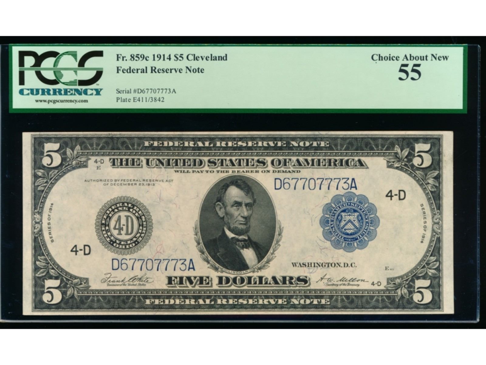 One 1914 $5 Large Cleveland Federal Reserve Note PCGS 55.
