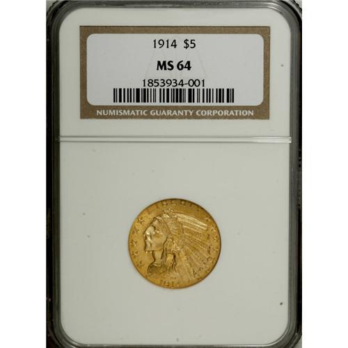 1914 $5 MS64 NGC. Even to a jaded observer, the presen