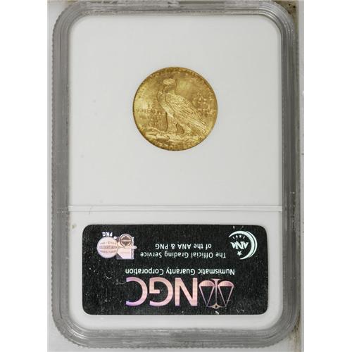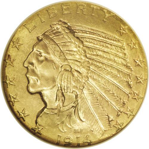 <B>1914 $5 MS64 NGC.</B></I> The fine-grained honey-gold surfaces have tinges of green-gold in the recessed devices on both sides of this attractive near-Gem. The few surface marks seen are consistent with the grade, but a tick on the Indian's cheekbone bears mention. Elusive any finer with only 14 Gem quality coins certified by NGC (12/06).<BR><BR><b>Shipping:</b> Coin/Currency (<a target="_blank" href="http://www.heritageauctions.com/common/shipping.php">view shipping information</a>)