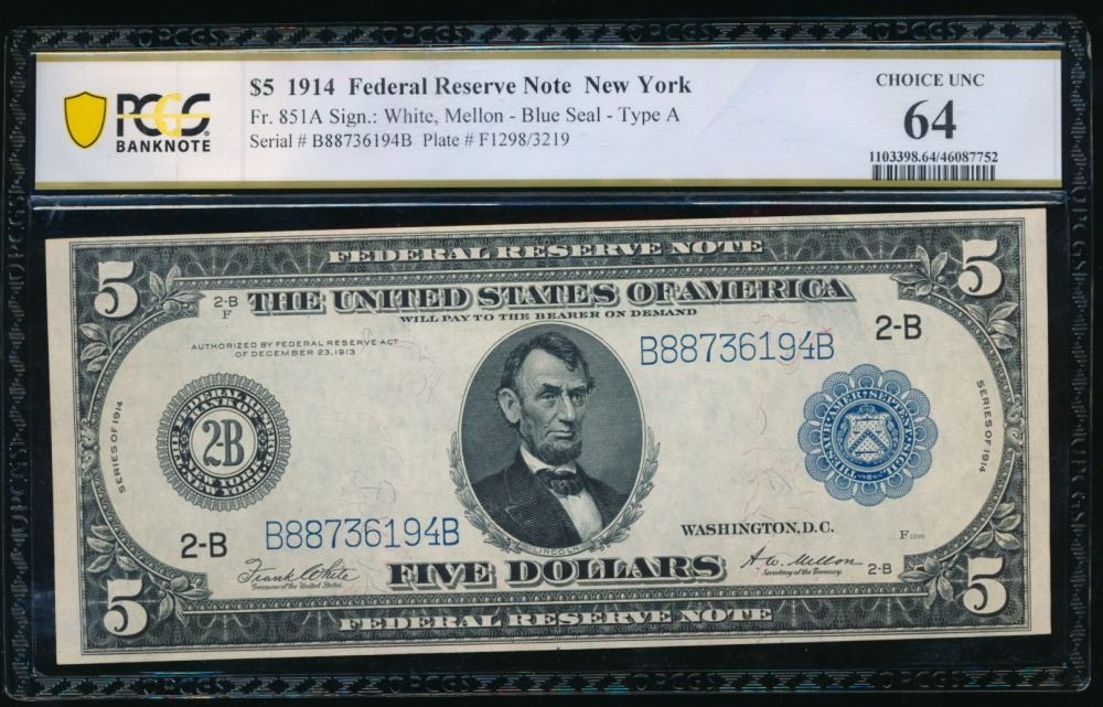 One 1914 $5 New York FRN PCGS 64.