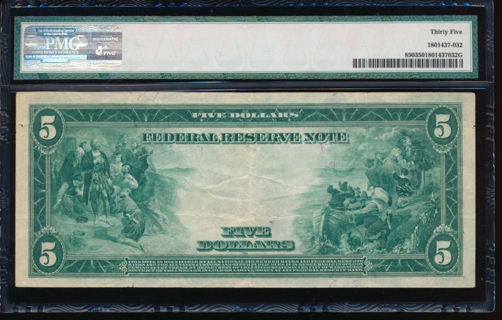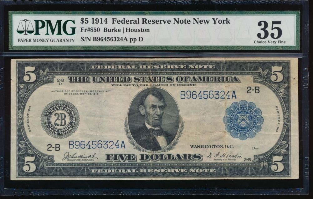One 1914 $5 New York Federal Reserve Note PMG 35.