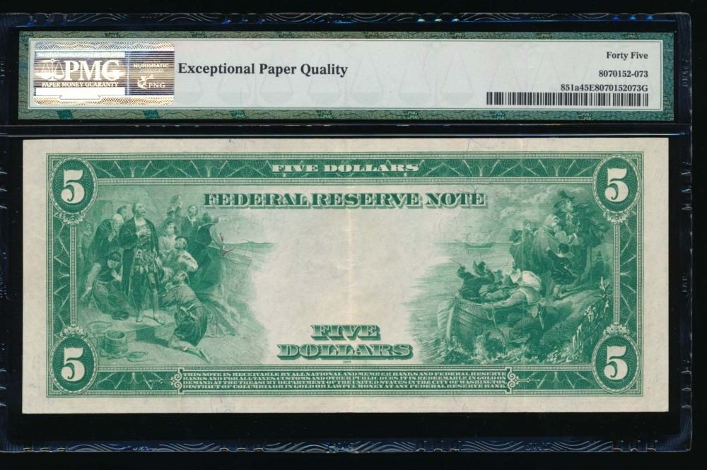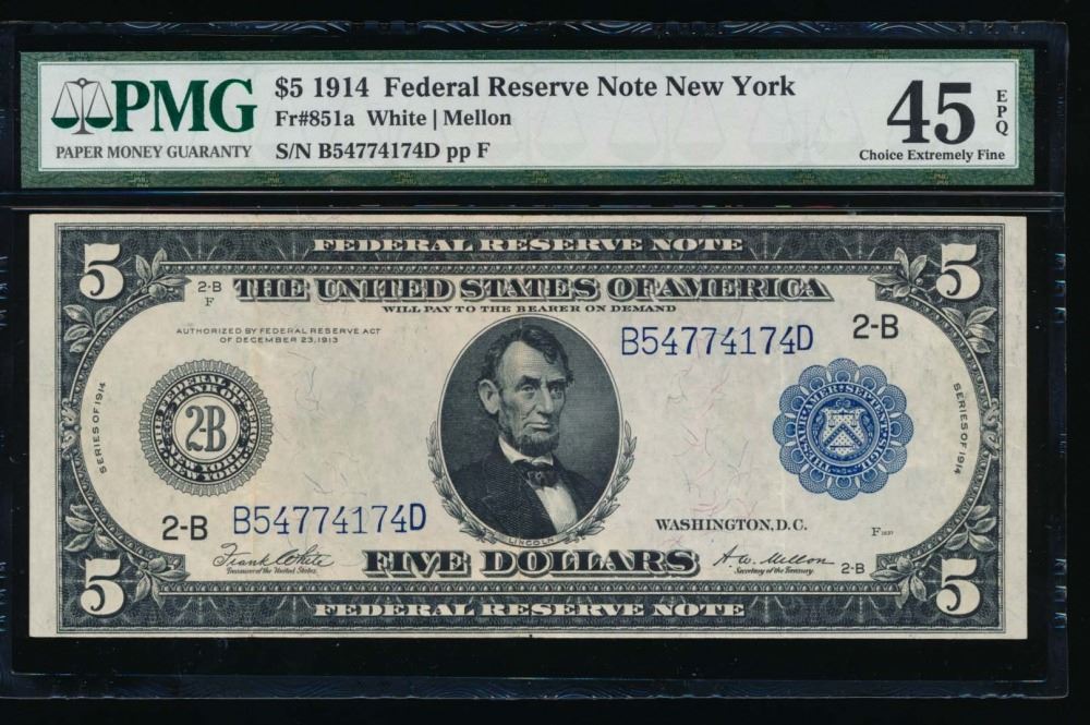 One 1914 $5 New York Federal Reserve Note PMG 45EPQ.
