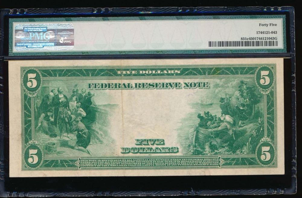 One 1914 $5 New York Federal Reserve Note PMG 45.