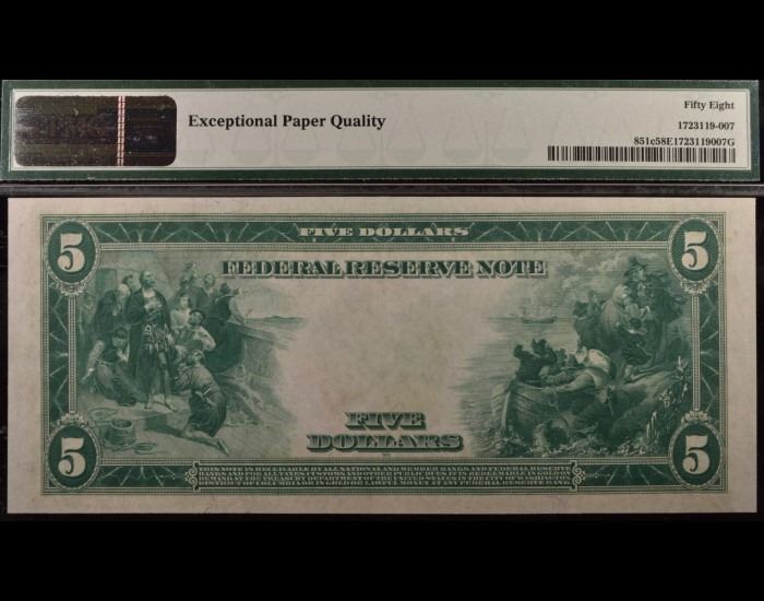 One 1914 $5 New York Federal Reserve Note PMG 58EPQ.