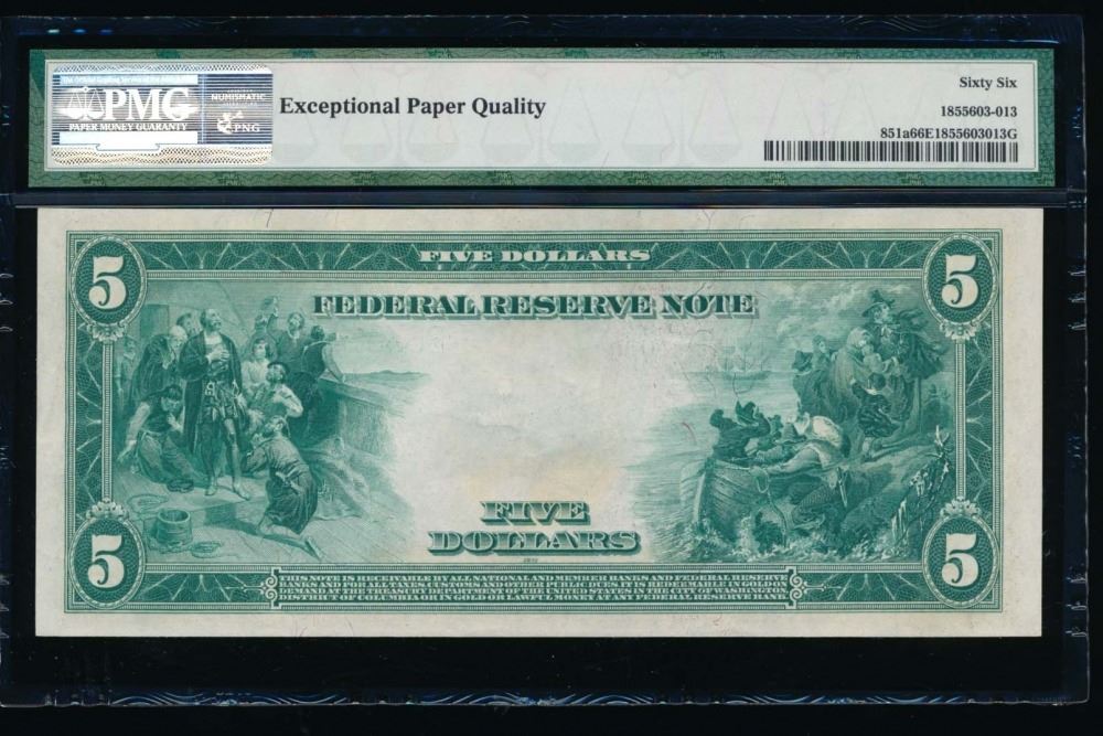 One 1914 $5 New York Federal Reserve Note PMG 66EPQ.