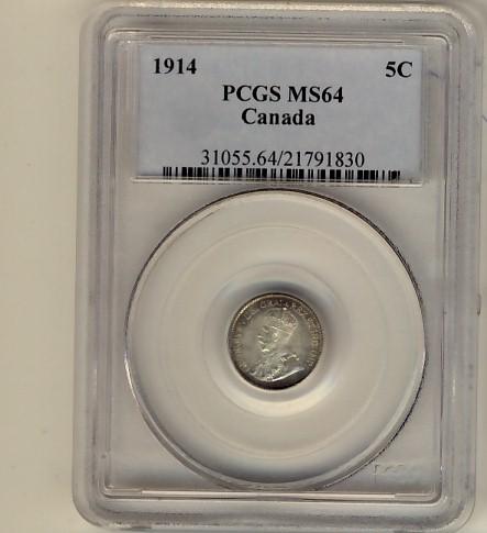 1914 5¢ PCGS MS64. Lustre and light rim tones.