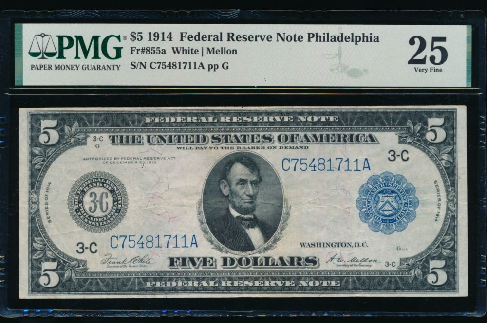 One 1914 $5 Philadelphia FRN PMG 25.