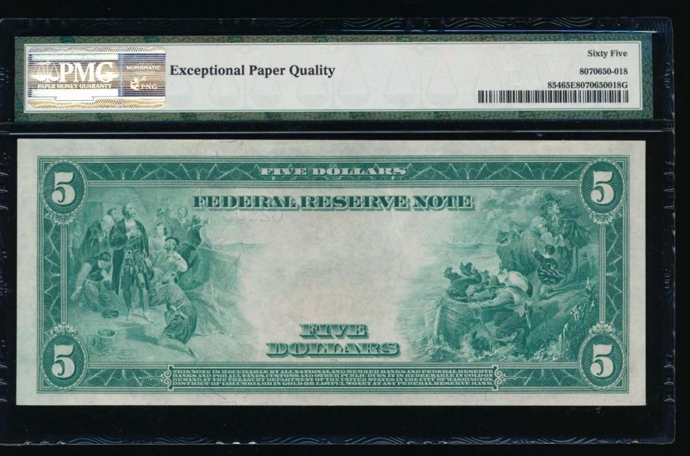 One 1914 $5 Philadelphia Federal Reserve Bank Note PMG 65EPQ.