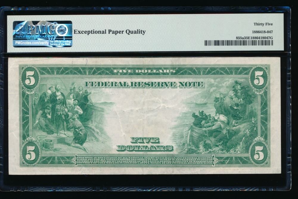 One 1914 $5 Philadelphia Federal Reserve Note PMG 35EPQ.