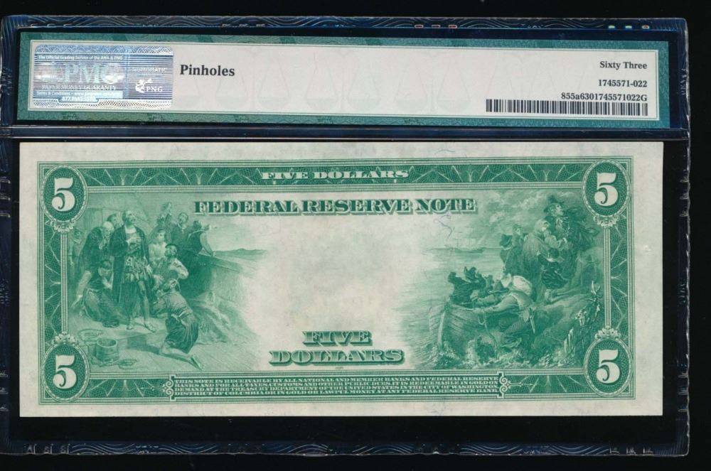One 1914 $5 Philadelphia Federal Reserve Note PMG 63.