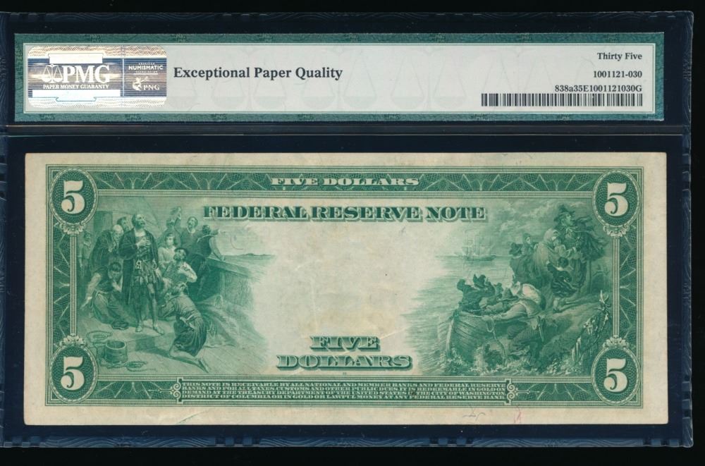 One 1914 $5 Red Seal Chicago Federal Reserve Note PMG 35EPQ.
