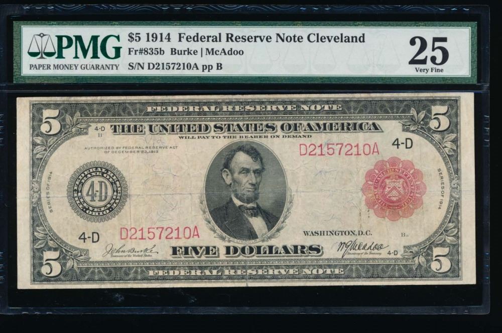 One 1914 $5 Red Seal Federal Reserve Note PMG 25.
