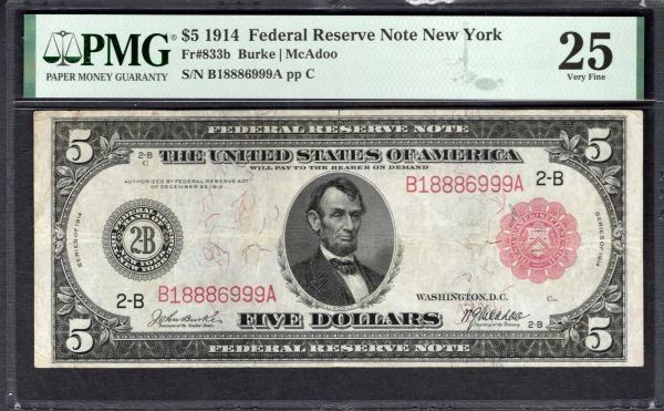 One 1914 $5 Red Seal New York FRN PMG 25.