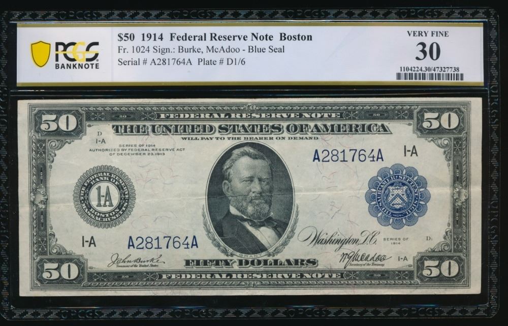 One 1914 $50 Boston FRN PCGS 30.
