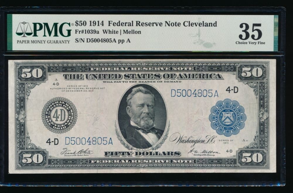 One 1914 $50 Cleveland Federal Reserve Note PMG 35.
