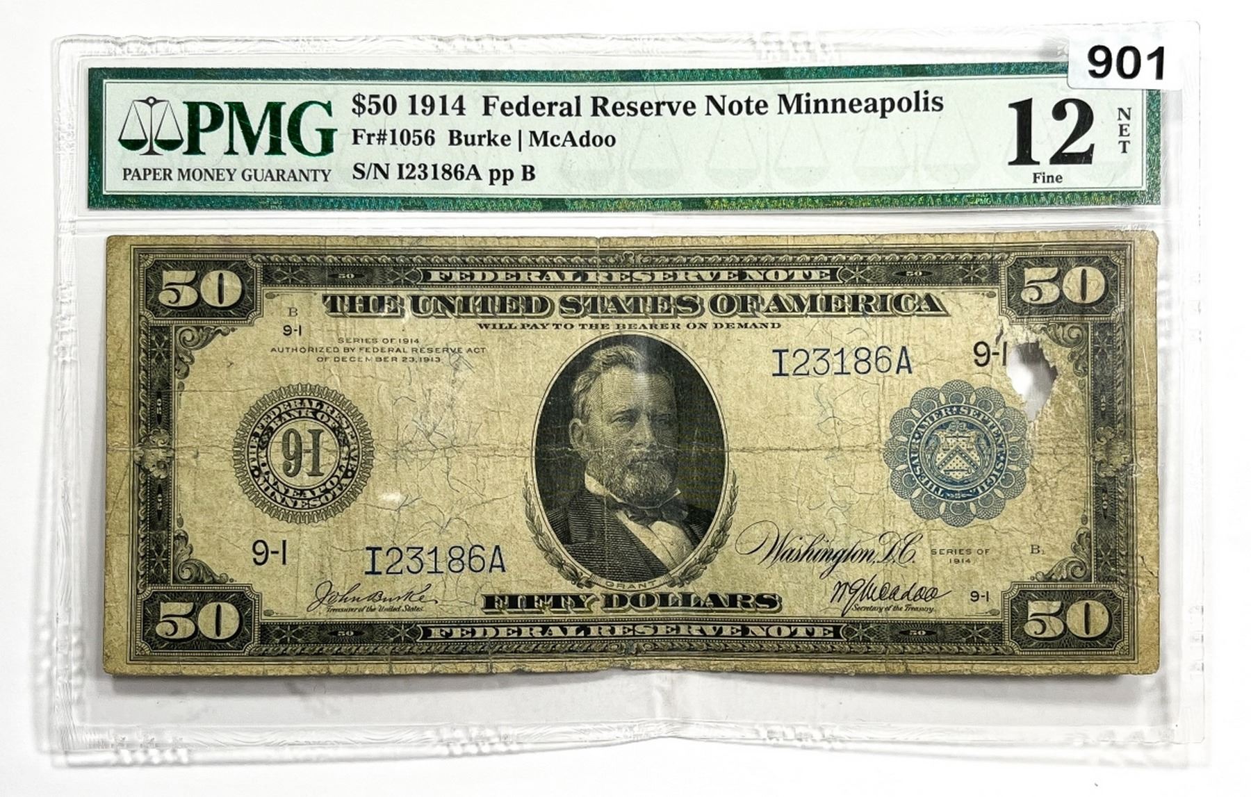 1914 $50 Fed Res Note Minn PMG-12 Plastic Bent