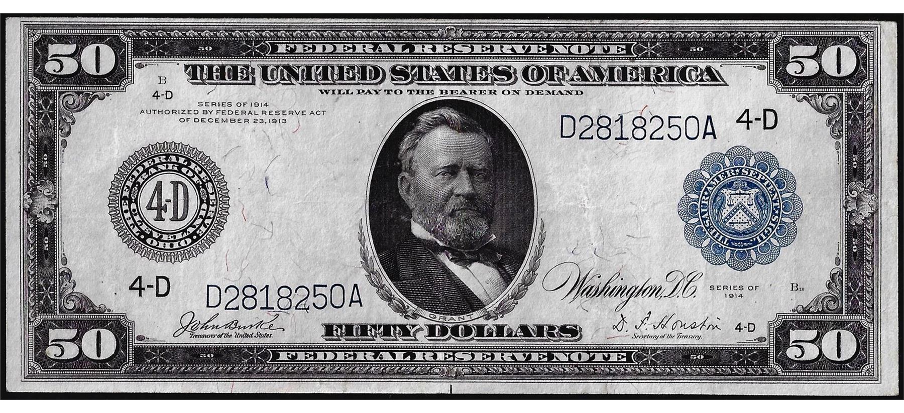 One 1914 $50 Federal Reserve Note Cleveland.